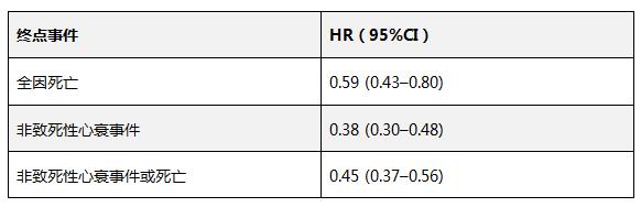 校正变量:入组年龄、血清肌酐值、入组时吸烟情况、糖尿病、心脏病病因、左室收缩末期容积、体表面积、基线QRS间期、入组前3个月NYHA心衰分级