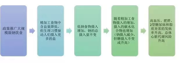 2. 减少精加工食物中的钠含量可能反而会导致食物摄入的增加,从而升高心脏代谢疾病的发病率(图 1)。