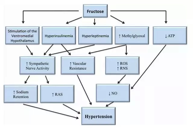 6. 研究显示,果糖可直接刺激交感紧张,也可通过刺激胰岛素抵抗和高胰岛素血症间接刺激交感紧张。